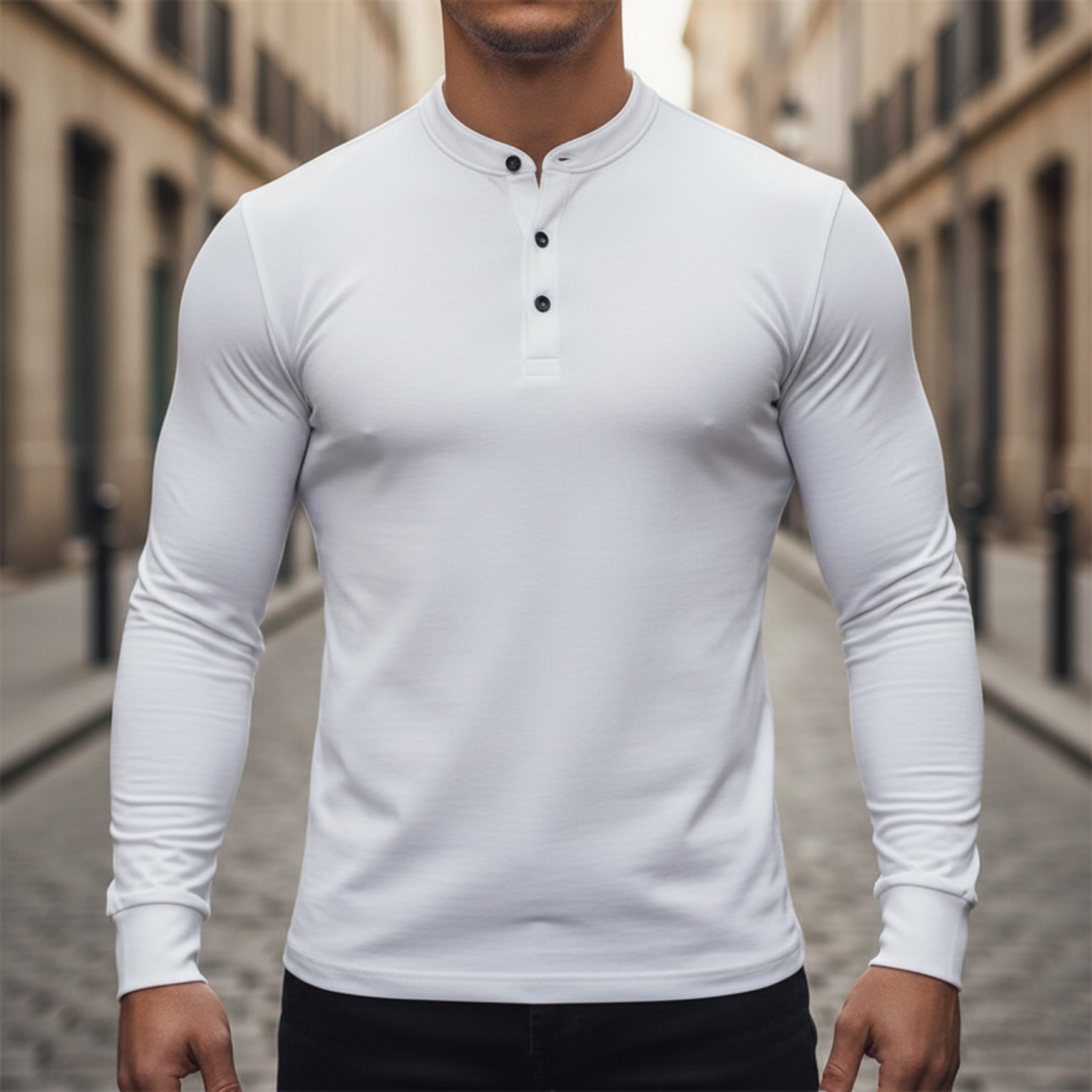 This men’s polo shirt is designed with a long sleeve cut and a stretch cotton fabric, featuring a buttoned polo neckline, fitted casual silhouette, and solid color finish, suitable for everyday wear, business casual settings, and seasonal layering.
