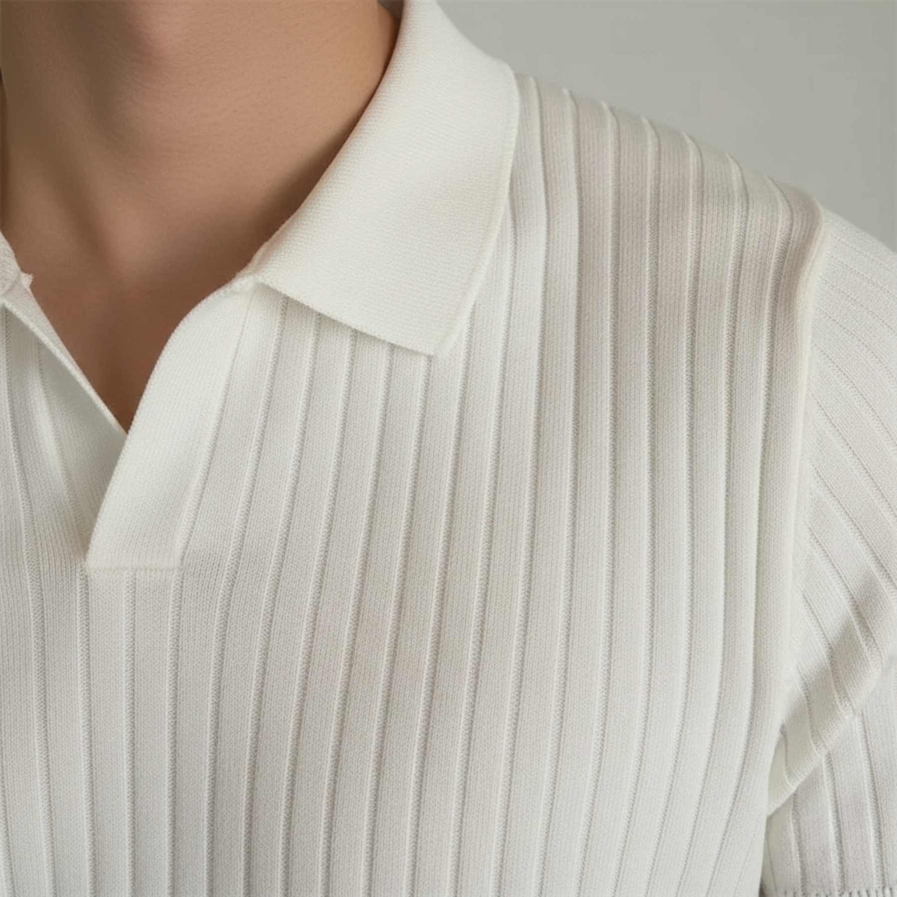 Camisa Polo de Punto de Manga Corta Acanalada Ajustada para Hombre Casual