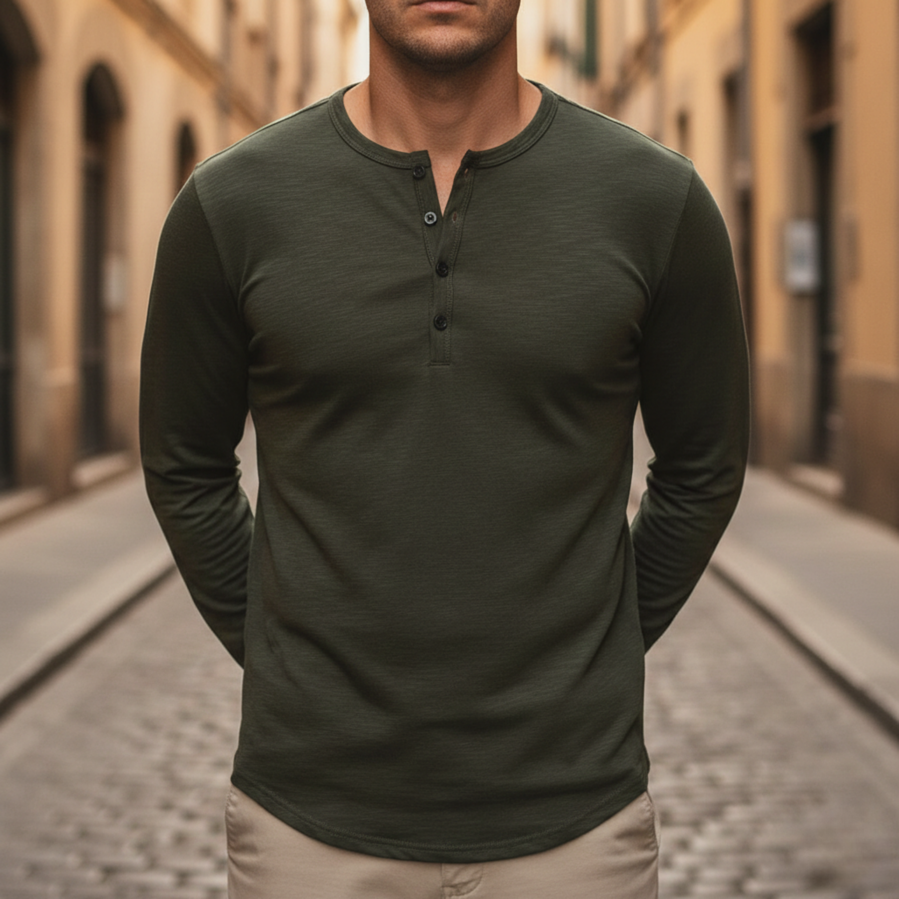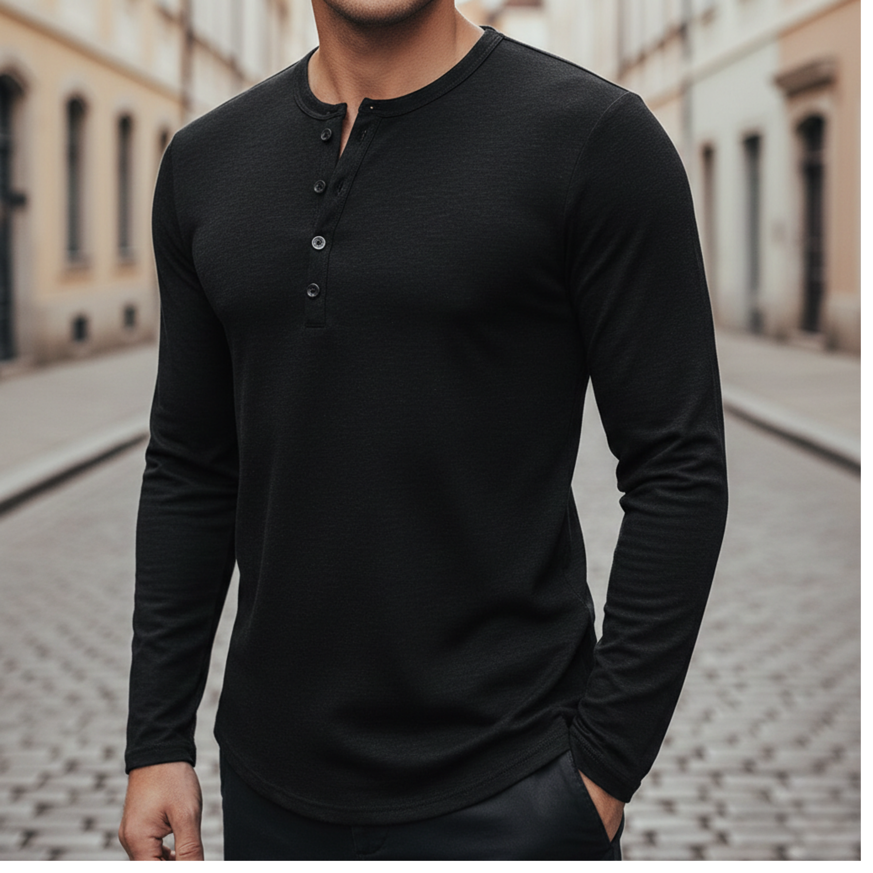 La camisa está diseñada para hombres adultos y presenta una construcción de manga larga con un cuello Henley de botón y un ajuste casual regular. Presentada en colores sólidos, esta camisa se usa como una prenda independiente o se puede llevar debajo de chaquetas y camisas exteriores para un uso casual diario. Su silueta limpia y el simple detalle de botón la hacen adecuada para entornos relajados, temporadas de transición y uso diario donde se prefiere un estilo clásico Henley.