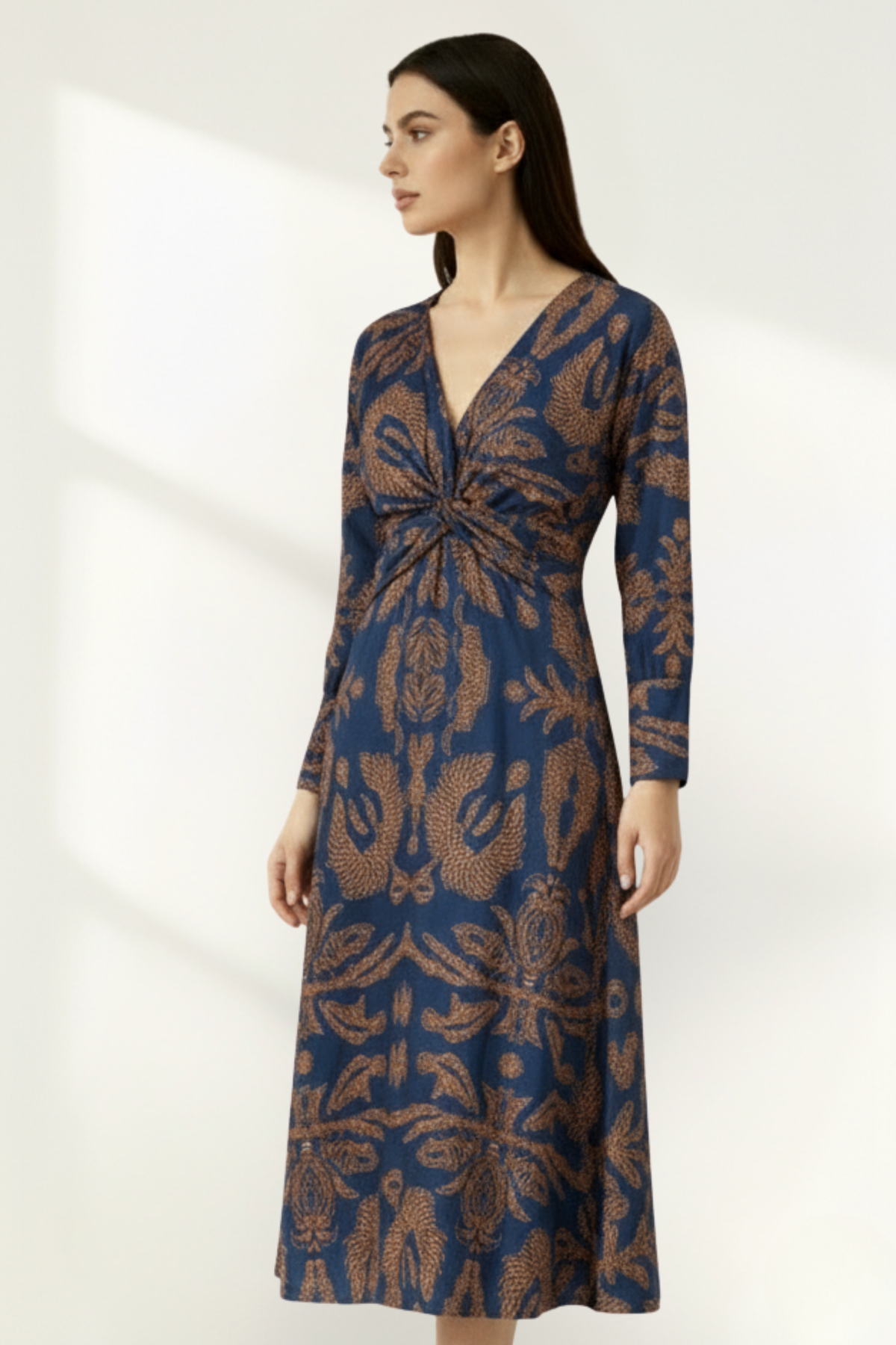 Vestido midi impreso de manga larga para mujer