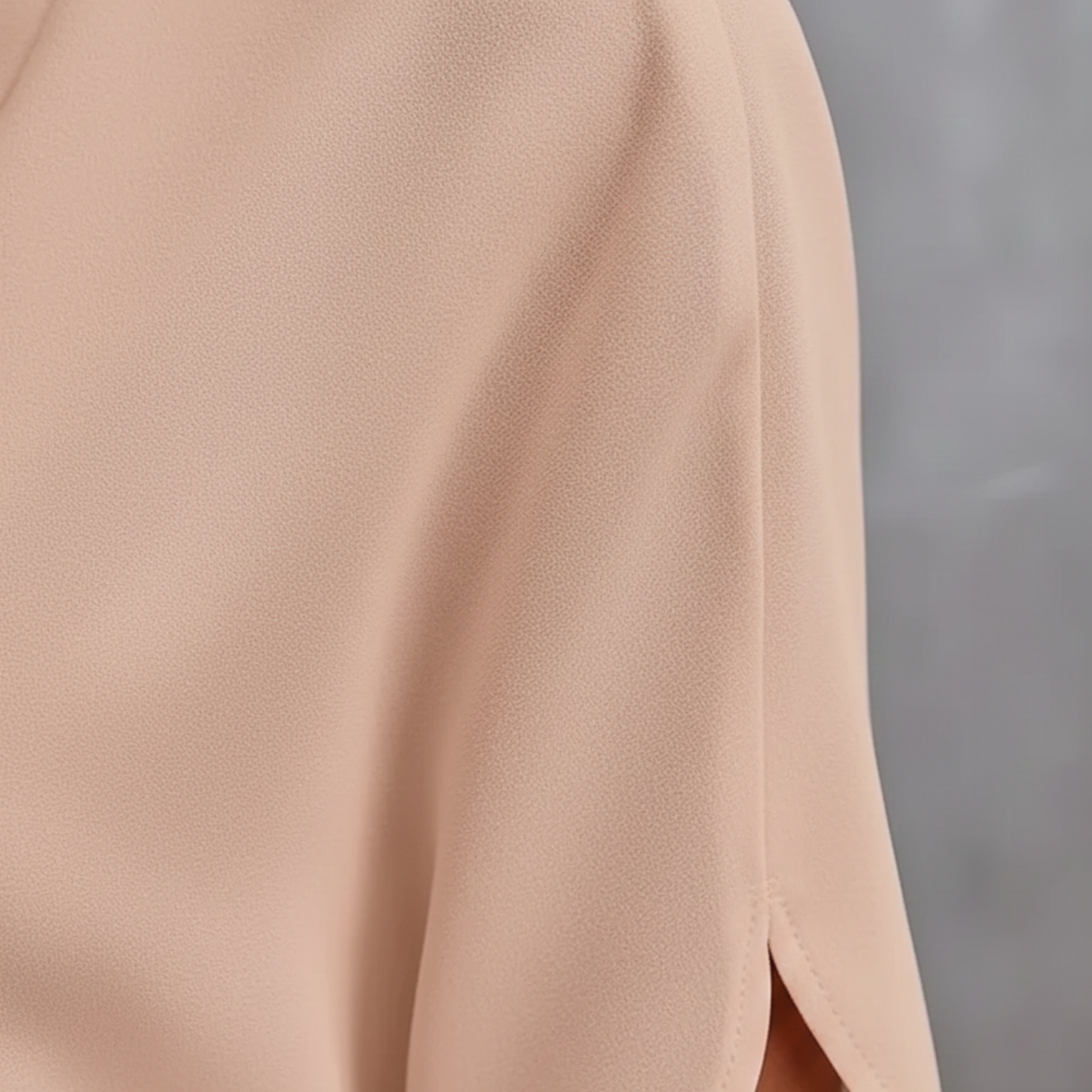 Esta blusa de seda presenta un escote en V y mangas cortas con vuelo diseñadas para mujeres. La tela tejida ligera ofrece un caído suave adecuado para el uso en la oficina, atuendos de negocios informales y estilos cotidianos. El corte relajado permite combinarla con jeans, pantalones o faldas para un apilamiento versátil de temporada.
