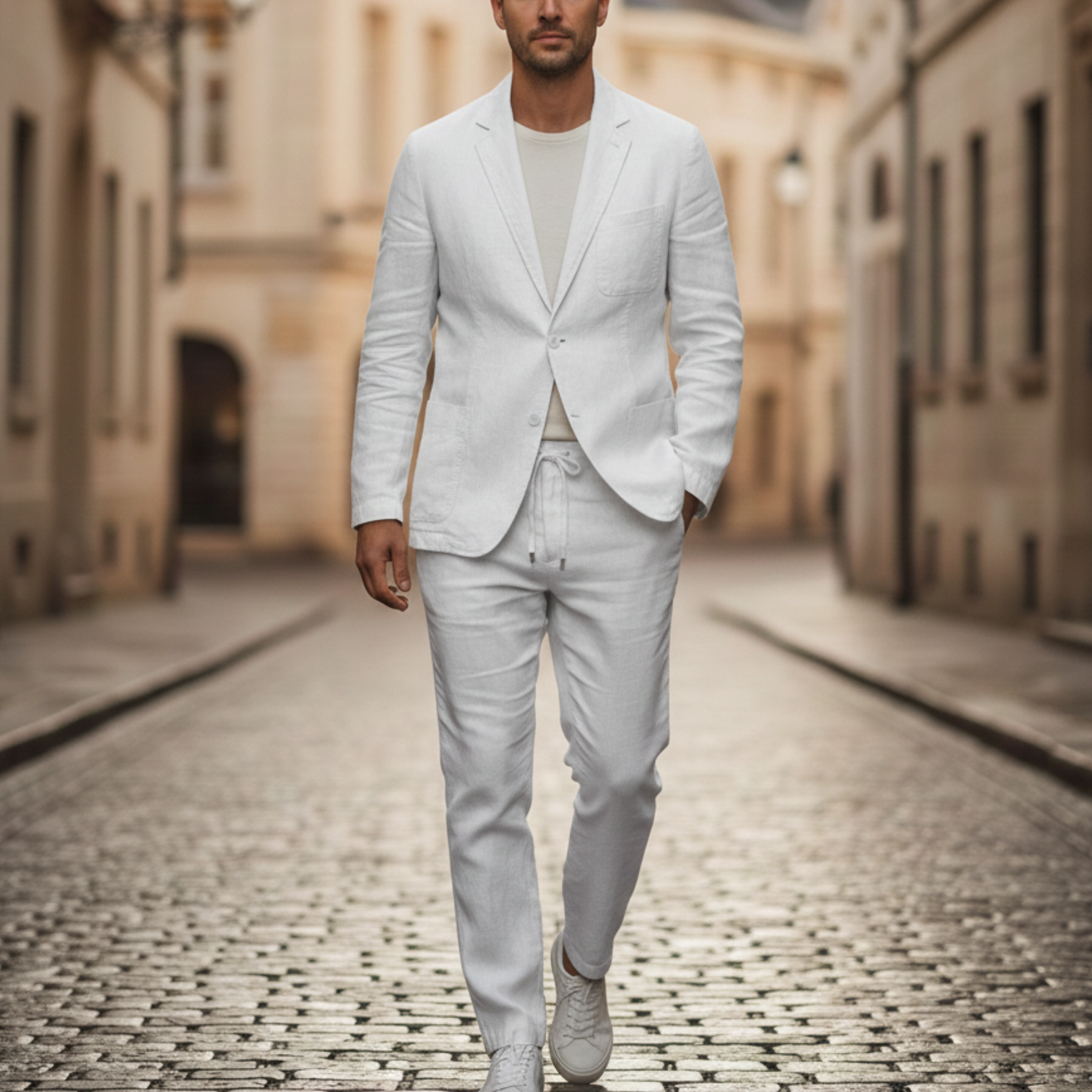 Ensemble de costume en lin deux pièces veste et pantalon pour homme