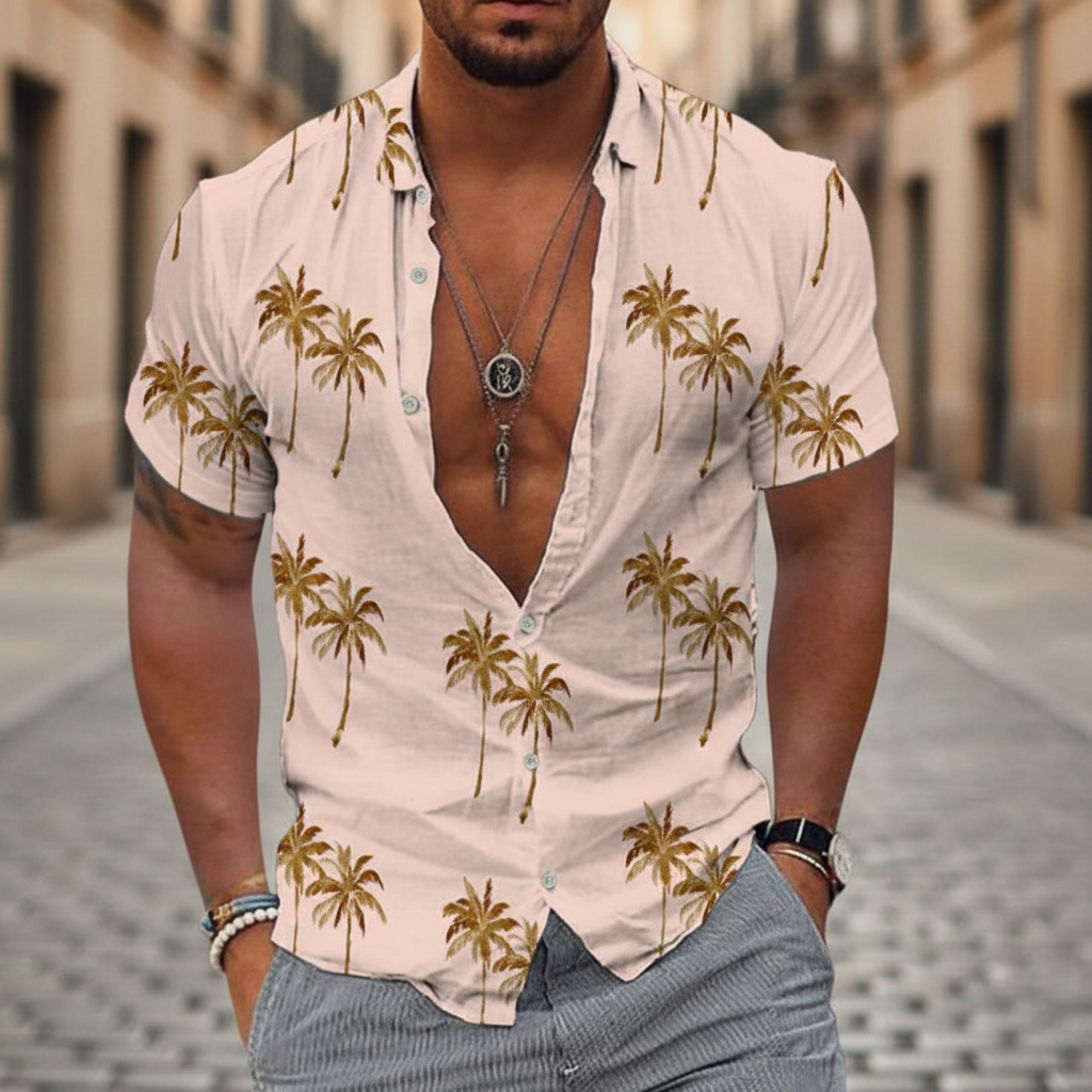 Chemise à manches courtes imprimé de palmiers pour homme