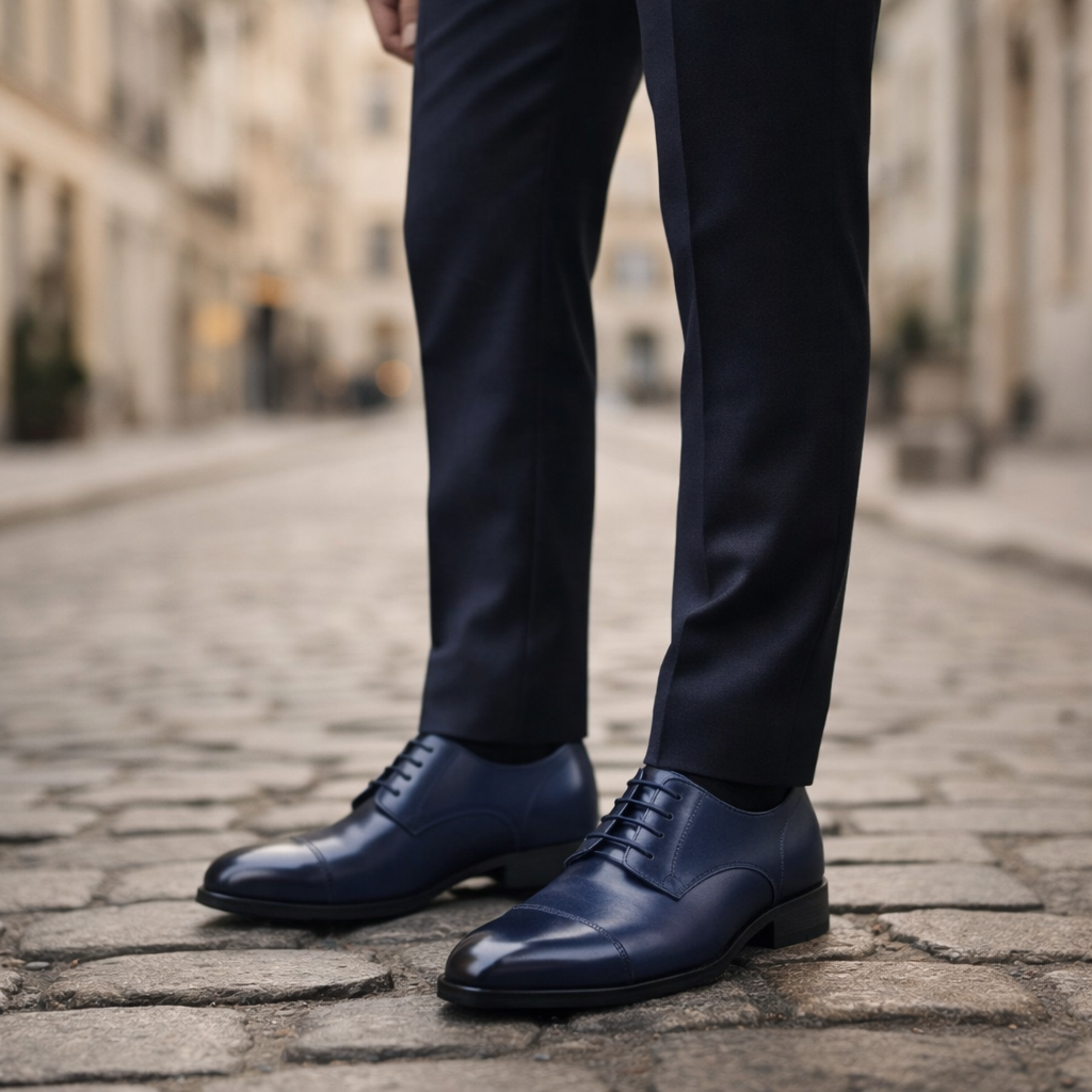 Chaussures habillées Oxford à lacets en cuir pour hommes, présentant un design formel structuré et une tige cousue. Ce type de chaussure se porte avec des vêtements professionnels ou formels et comprend un système de fermeture à lacets fermé, une tige à finition lisse, et une semelle extérieure durable adaptée à un usage régulier de chaussures habillées.