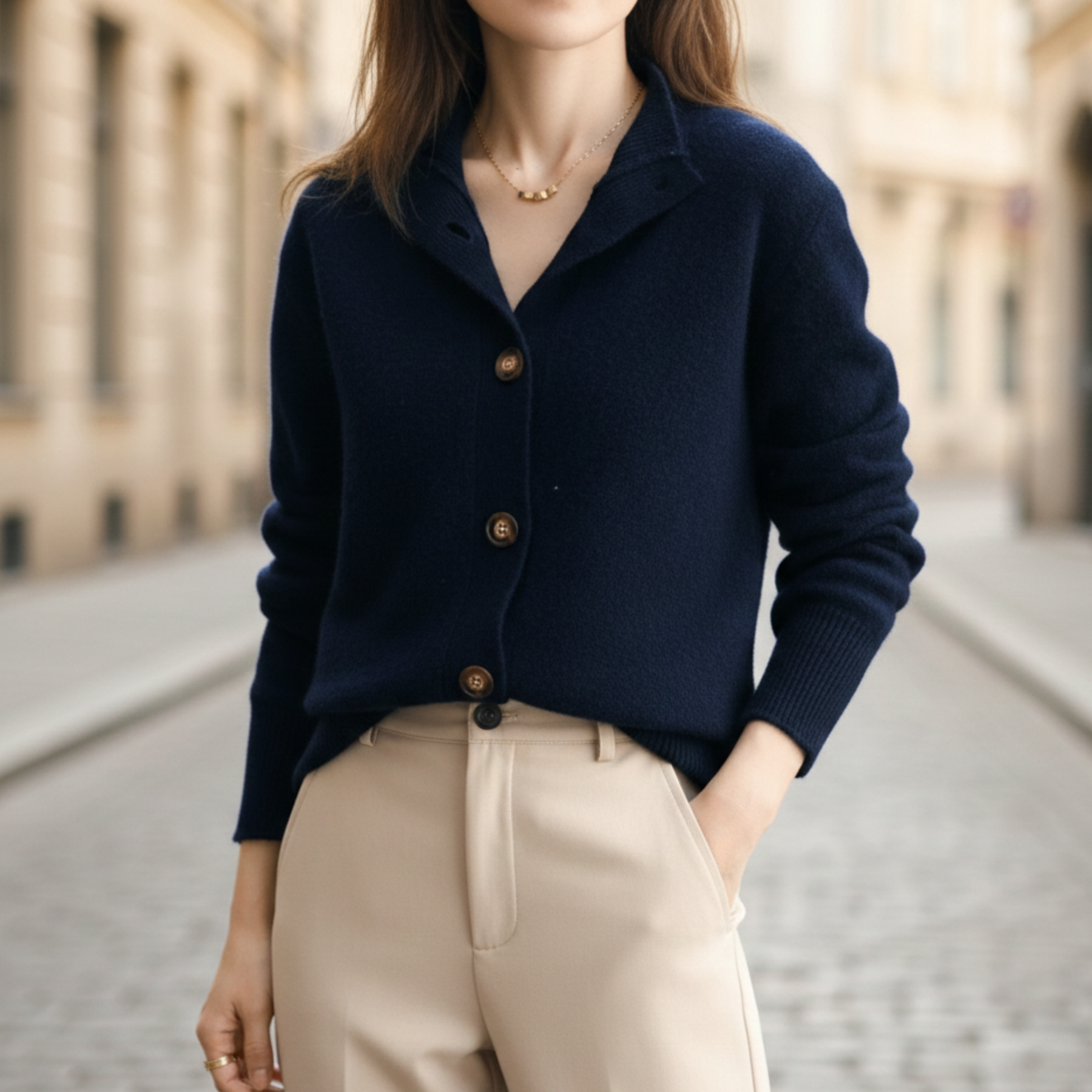 Cardigan en cachemire à boutons, coupe ajustée pour femmes