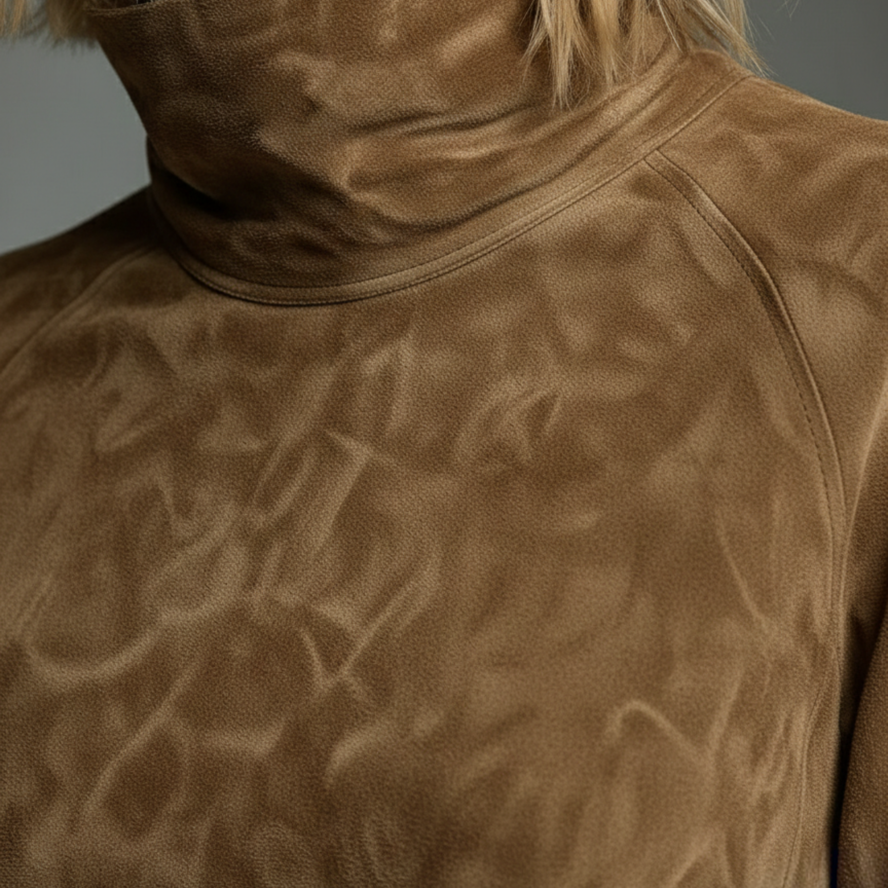 Mini-robe oversize en daim pour femmes, conçue avec un col montant et des manches longues. Ce vêtement se porte au quotidien ou pour des occasions, et présente une silhouette ample, un tissu doux style daim, et une longueur standard adaptée à un usage saisonnier régulier.