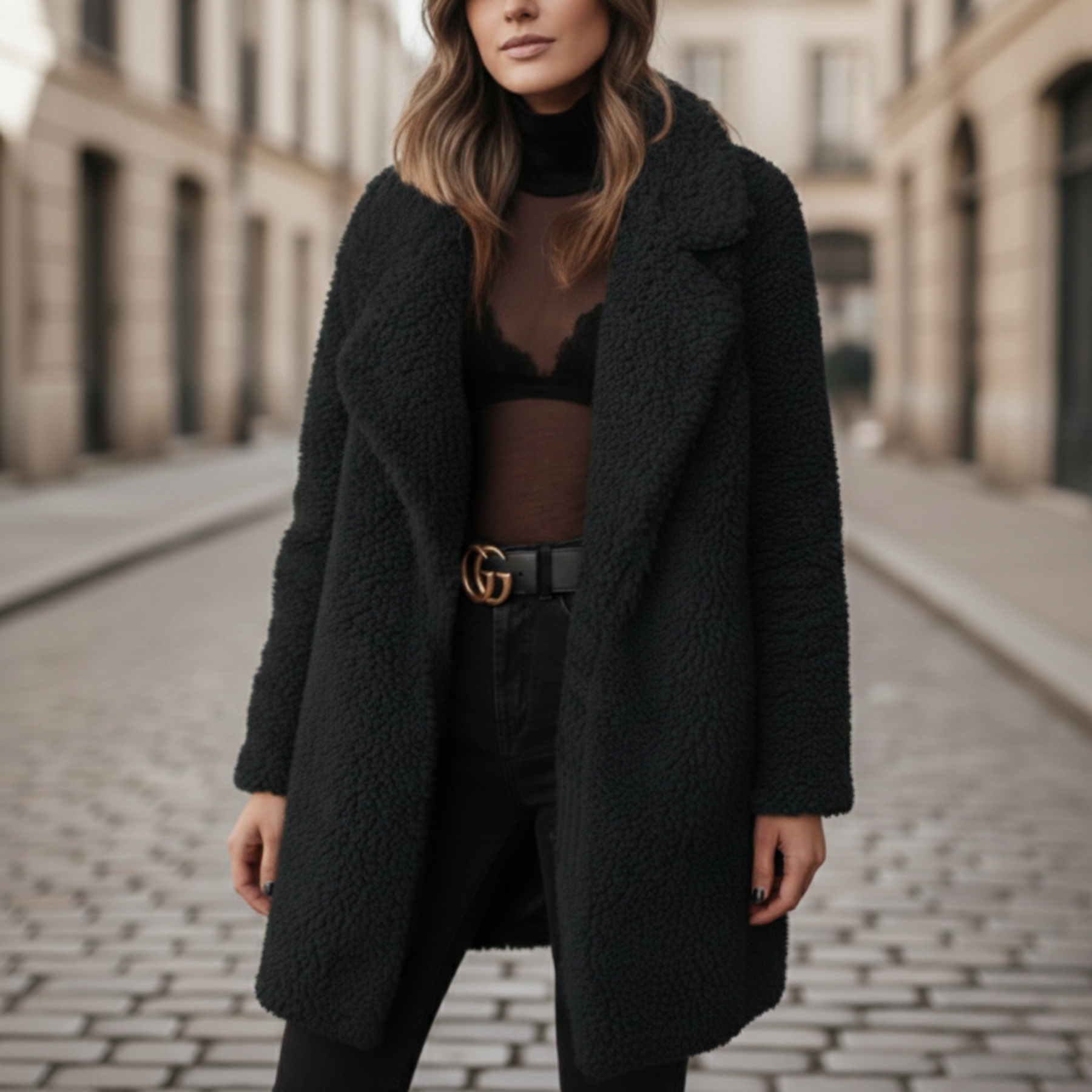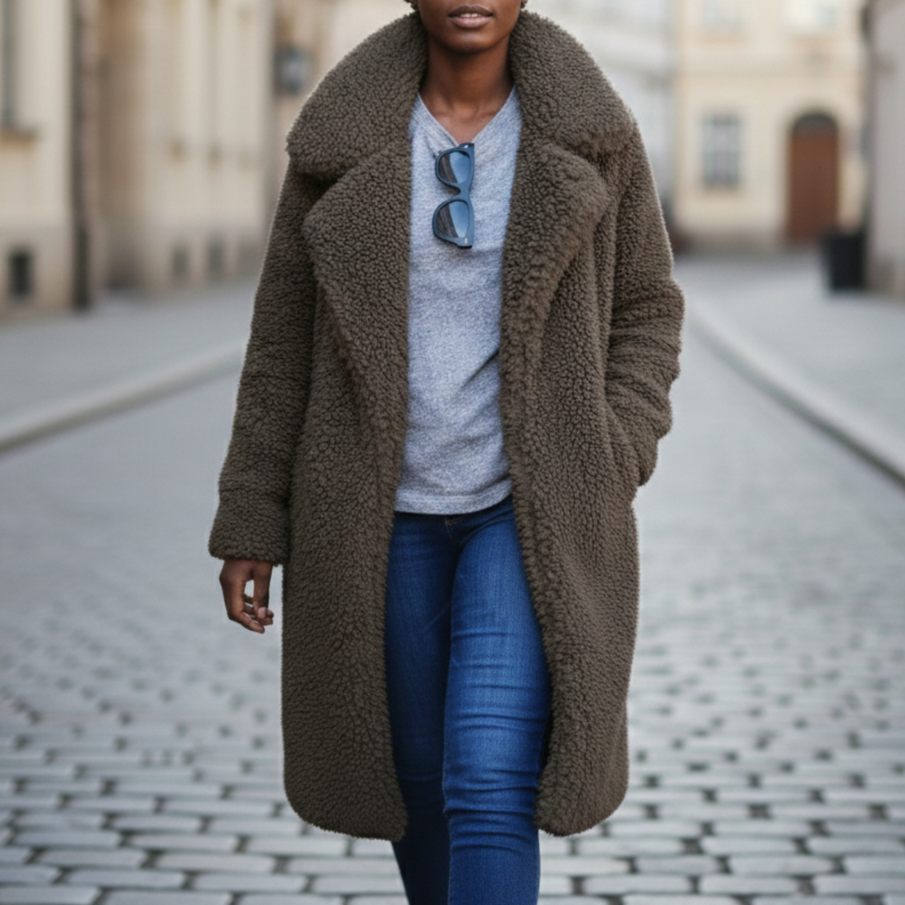 Ce manteau teddy pour femmes présente un design long avec un tissu texturé et un col à revers cranté. Conçu avec des manches longues et une silhouette à ouverture frontale, il offre une coupe décontractée adaptée pour être superposée sur des pulls ou des hauts. La couleur verte unie le rend approprié pour des vêtements d'extérieur décontractés et saisonniers par temps frais.